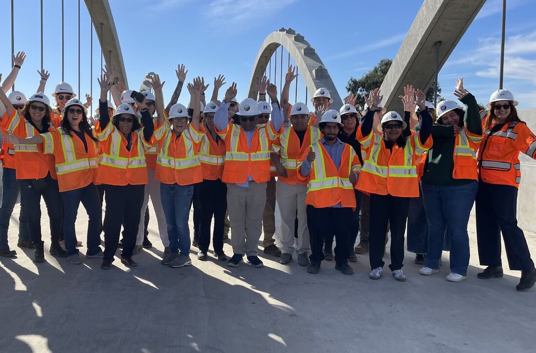 JMA Attends CA High-Speed Rail Fresno Construction Tour October 21, 2024 JMA’s Marketing Manager, Katie Naster, had the privilege of participating in the Fresno Segment Construction Tour for the CA High-Speed Rail Program, showcasing key developments such as the Fresno station area, the Tulare Street grade separation and UPRR shoofly, and the impressive Cedar Viaduct. As a proud SBE partner in the program who led the design of the UPRR shoofly to support the Tulare Street grade separation and is currently completing the schematic design for the Fresno High-Speed Rail Station, JMA was thrilled to receive an invitation. After the tour, Katie attended the WTS-CenCal’s New Frontier Event: High-Speed Rail Women Leading the Way event, where distinguished panelists, including one of our tour guides, Margaret Cederoth, shared insights into the latest progress, upcoming opportunities, and community growth around CA High-Speed Rail and other upcoming rail connections. Scaffolding to the Cedar Viaduct CA High-Speed Rail Fresno Construction Tour Aerial Shot of Attendees on the Cedar Viaduct Group Photo